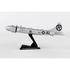 O B-29 Superfortress era um bombardeiro pesado de quatro motores movido a hélice e uma das maiores aeronaves usadas durante a Segunda Guerra Mundial. Um bombardeiro avançado para a época, suas características incluíam torres de metralhadoras controladas remotamente e uma cabine pressurizada que permitia o vôo em grandes altitudes. Notoriamente, o Enola Gay foi o B-29 que lançou a primeira bomba atômica, conhecida como “Little Boy”, sobre Hiroshima no Japão. Também participou do segundo ataque atômico sobre Nagasaki. Está bem estabelecido que o Enola Gay ajudou a pôr fim à Segunda Guerra Mundial na Frente do Pacífico. Este modelo de avião de metal fundido vem em escala 1:200 com suporte de plástico