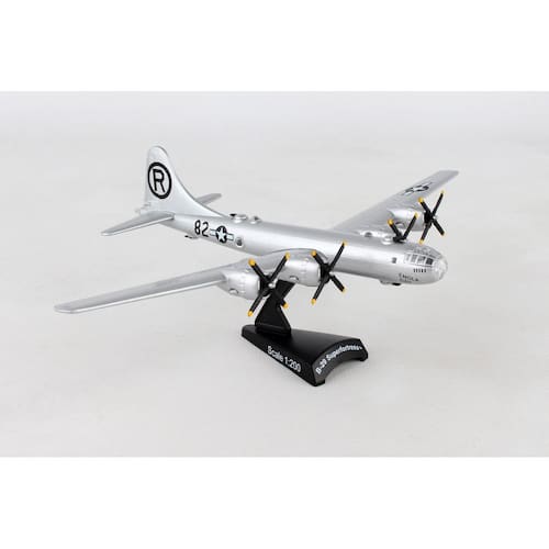 Miniatura aviao bombardeio daron usa af b-29 superfort 1/200 Cor: cinza O b-29 superfortress era um bombardeiro pesado de quatro motores movido a hélice e uma das maiores aeronaves usadas durante a segunda mundial. um bombardeiro avançado para a época, suas características incluíam torres de metralhadoras controladas remotamente e uma cabine pressurizada que permitia o vôo em grandes altitudes. notoriamente, o enola gay foi o b-29 que lançou a primeira bomba atômica, conhecida como little boy, sobre hiroshima no japão. também participou do segundo ataque atômico sobre nagasaki. está bem estabelecido que o enola gay ajudou a pôr fim à segunda mundial na frente do pacífico. este modelo de avião de metal fundido vem em escala 1:200 com suporte de plástico Medidas: Comprimento: 15 cm Envergadura: 20,63 cm Marca: Não Informado