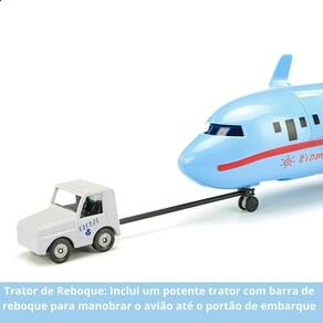 Aeronave Interativa: O teto frontal se abre para revelar a cabine com quatro passageiros, enquanto o compartimento de carga traseiro tem espaço para transportar um carrinho não incluso . Realismo em Ação: Possui trem de pouso retrátil para simular decolagens e pousos perfeitos e luzes de LED que se apagam automaticamente para poupar energia. Veículo Follow-Me: Um veículo de apoio com luzes piscantes para guiar a aeronave com segurança pelo pátio do aeroporto. Trator de Reboque: Inclui um potente trator com barra de reboque para manobrar o avião até o portão de embarque. Controle em Solo: Uma figura de sinalizador de pátio marshaller está inclusa para coordenar todas as operações em terra. Dimensões Imponentes: Medindo 36,3 cm de comprimento por 38,5 cm de largura, é uma peça central em qualquer coleção.