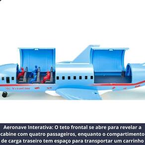 Aeronave Interativa: O teto frontal se abre para revelar a cabine com quatro passageiros, enquanto o compartimento de carga traseiro tem espaço para transportar um carrinho não incluso . Realismo em Ação: Possui trem de pouso retrátil para simular decolagens e pousos perfeitos e luzes de LED que se apagam automaticamente para poupar energia. Veículo Follow-Me: Um veículo de apoio com luzes piscantes para guiar a aeronave com segurança pelo pátio do aeroporto. Trator de Reboque: Inclui um potente trator com barra de reboque para manobrar o avião até o portão de embarque. Controle em Solo: Uma figura de sinalizador de pátio marshaller está inclusa para coordenar todas as operações em terra. Dimensões Imponentes: Medindo 36,3 cm de comprimento por 38,5 cm de largura, é uma peça central em qualquer coleção.