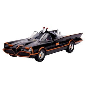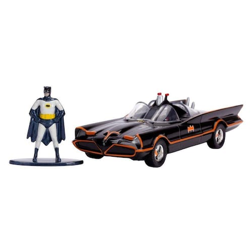 Miniatura Batmóvel 1/32 1966 Com Boneco - Jada ToysInformações do Produto: Este modelo foi o primeiro a ser utilizado como batmóvel na série de tv. O modelo possui um visual único, detalhes e acabamentos igual ao original.Itens inclusos: 1 batmóvel,1 boneco batman.Dimensões aproximadas do produto: AxLxC 4cm x 4cm x 12,5cm.Recomendado: Não recomendado para crianças menores de 03 anos.Alimentação: Não necessita.Material composição: Plástico e metal.Certificação: CE-BRI/BRICS 00167-15 NM 300/2002. Ocp 0098.Garantia do Fabricante: 03 meses contra defeitos de fabricação.Aviso: Todas as informações divulgadas são de responsabilidade exclusiva do fabricante/fornecedor. As cores dos tecidos ou dos produtos podem variar entre as imagens mostradas acima ou fotos da embalagem. Imagens meramente ilustrativas.