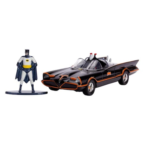 Miniatura Batmóvel 1/32 1966 Com Boneco - Jada Toys Informações do Produto: Este modelo foi o primeiro a ser utilizado como batmóvel na série de tv. O modelo possui um visual único, detalhes e acabamentos igual ao . Itens inclusos: 1 batmóvel,1 boneco batman. Dimensões aproximadas do produto: AxLxC 4cm x 4cm x 12,5cm. Recomendado: Não recomendado para crianças menores de 03 anos. Alimentação: Não necessita. Material composição: Plástico e metal. Certificação: CE-BRI/BRICS 00167-15 NM 300/2002. Ocp 0098. do Fabricante: 03 meses contra defeitos de fabricação. Aviso: Todas as informações divulgadas são de responsabilidade exclusiva do fabricante/fornecedor. As cores dos tecidos ou dos produtos podem variar entre as imagens mostradas acima ou fotos da embalagem. Imagens meramente ilustrativas. Marca: Não Informado Ean: 0801310317037