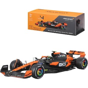 Miniatura Bburago McLaren F1 MCL38 Miami Grand Prix 2024 Lando Norris 4 1/24 c/ Piloto