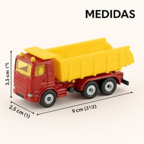 Marca: Siku Modelo: Truck com Caçamba Basculante (Dumper Body) Material: Metal fundido (die-cast) com componentes plásticos robustos Dimensões: 83 mm (comprimento) x 30 mm (largura) x 38 mm (altura) Escala: Compatível com outras miniaturas Siku Funcionalidade: Caçamba móvel, simulando operações de carga e descarga