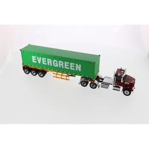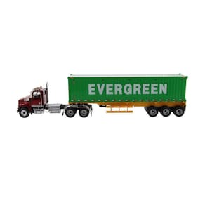 Confira este caminhão excepcional da Diecast Masters! Este trator de caminhão com cabine tandem Western Star 4700 SB com reboque esqueleto e 40 & # 39; Evergreen Shipping Dry Goods Sea Container é uma réplica do modelo em escala 1/50. Ele vem em vermelho e possui construção pesada em metal fundido, espelhos retrovisores detalhados, escapamentos retos e curvos, pára-lamas, barra de luz no teto, interior da cabine apresentado com precisão, capô que abre para revelar detalhes do motor, , chassi de eixo tandem incluindo detalhes de transmissão, quinta roda giratória funcional, reboque de esqueleto amarelo de segurança removível com 40' contêiner marítimo perene (feito de plástico)