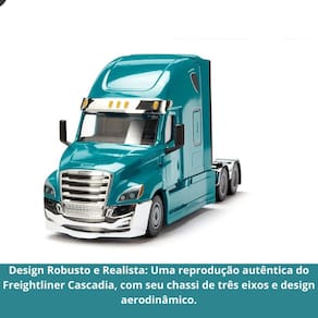 Design Robusto e Realista: Uma reprodução autêntica do Freightliner Cascadia, com seu chassi de três eixos e design aerodinâmico. Construção Premium Diecast: Carroceria em metal fundido de alta qualidade e componentes plásticos duráveis, assegurando resistência e um toque autêntico. Pintura Exclusiva Miami Blue: Acabamento em um chamativo tom de azul com detalhes cromados, que realçam as linhas do caminhão. Funcionalidades Interativas: O capô pode ser aberto, revelando detalhes do motor e adicionando um elemento de interatividade. Pneus de Borracha Genuínos: Rodas com pneus de borracha que proporcionam maior realismo e excelente rolagem. Cabine Detalhada: Inclui um compartimento de dormir na parte traseira da cabine, replicando o conforto para o motorista em longas viagens. Compatibilidade Siku Super Serie: Equipado com um engate padrão que permite a combinação com todos os reboques da série Siku Super na escala 1:50, expandindo as possibilidades de jogo e exibição. Dimensões: Aproximadamente 18,1 cm de comprimento, 6,5 cm de largura e 8,2 cm de altura.
