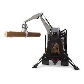Dirija-se ao local com o volante. Abaixe os estabilizadores e, em seguida, use a garra articulada para pegar as 10 toras e carregá-las no caminhão e no trailer.