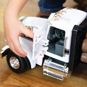 Projetado com detalhes realistas, este caminhão de toras para serviço pesado coloca a imaginação em ação com apenas um olhar. E com as rodas de borracha de rolamento suave e funcionalidade fascinante, não demora muito para o jogo fingir seguir.