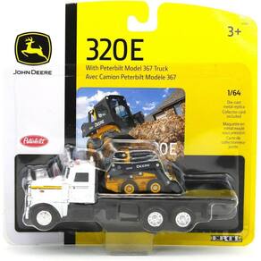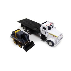 Novos modelos fundidos em escala 1/64 do Peterbilt 367 Flatbed Truck White com modelos fundidos sob pressão da minicarregadeira John Deere 320E da ERTL TOMY. Caixa totalmente nova. Pneus de borracha de verdade. Exteriores detalhados. Vem em um blister. Produto oficialmente licenciado. Não tenha nenhuma abertura. Feito em metal fundido com algumas peças de plástico