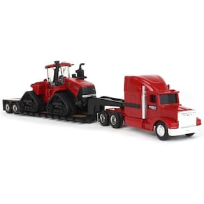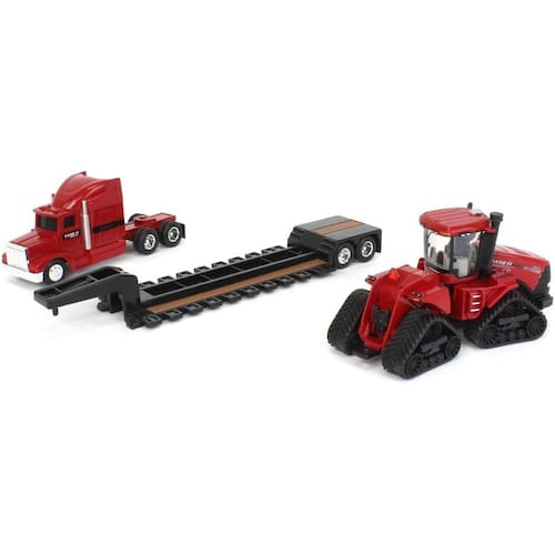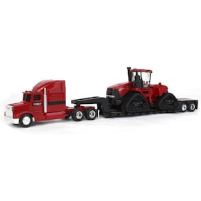 Este conjunto em escala 1/64 feito pela ERTL trará horas infinitas de diversão para qualquer jovem entusiasta da Case IH! Este conjunto inclui um semi-trator, reboque rebaixado e um trator Steiger 620 Quadtrac. O trator possui esteiras de rolamento livre e um interior detalhado, enquanto o semi-trator e o reboque apresentam rodas e pneus de duas peças. De acordo com o fabricante, este conjunto é recomendado para idades de 3+ anos, o que o torna ótimo para brincar!
