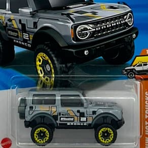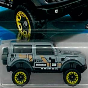 Adicione um toque de aventura e robustez à sua coleção com o 2021 Ford Bronco da Hot Wheels.