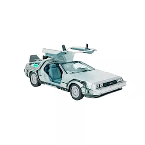 Este modelo da Welly representa o DeLorean DMC-12 como aparece em “De Volta para o Futuro II”, com modificações futuristas que permitem viagens ao ano de 2015. Em escala 1:24 e com 17 cm de comprimento, a miniatura traz os elementos visuais que marcaram a segunda parte da trilogia.