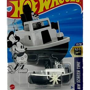 O Disney Steamboat é uma miniatura especial da Hot Wheels inspirada no icônico barco a vapor do curta “Steamboat Willie”, que marcou a estreia de Mickey Mouse em 1928. Parte da coleção HW Screen Time, este modelo celebra momentos clássicos da cultura pop e do entretenimento.