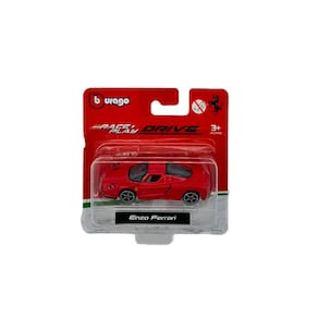 A lenda que leva o nome do fundador em escala reduzida. A miniatura da Ferrari Enzo, da linha Racing+Play Drive da BBurago, representa o superesportivo V12 lançado em 2002 com forte influência da Fórmula 1 e design revolucionário. Com escala 1:64, pintura em vermelho Ferrari tradicional e comprimento de 7 cm, esta versão compacta carrega o DNA da engenharia extrema com proporções acessíveis para colecionadores urbanos e vitrines versáteis.