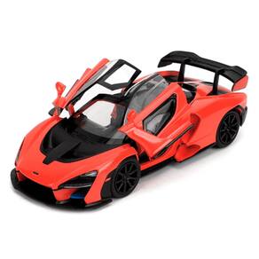 A miniatura da McLaren Senna da Jada faz parte da coleção Fast & Furious e traz toda a emoção das pistas para sua coleção. Inspirada no universo cinematográfico da franquia, esta réplica em escala 1:32 combina design radical, pintura laranja vibrante e detalhes fiéis ao supercarro britânico.