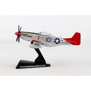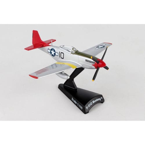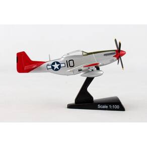 O P-51D Mustang foi construído como um caça e bombardeiro de longo alcance, e foi o melhor caça do final da Segunda Guerra Mundial, vendo ação em outros compromissos também. Na época, nenhum outro avião de combate poderia ir tão longe, voar tão alto ou tão rápido quanto o P-51D. Em 1944, o Mustang foi reconhecido como o melhor caça de escolta de longa distância de assento único. Mais de 15.000 P-51s foram produzidos. Os Tuskegee Airmen foram os primeiros aviadores afro-americanos nas forças armadas dos Estados Unidos que lutaram durante a Segunda Guerra Mundial. Este modelo de avião de metal fundido vem em escala 1:100 com suporte de plástico