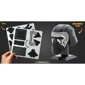 Item de colecionador: A Miniatura de Montar Metal Earth - Star Wars - Capacete Kylo Ren (MMS319) é uma peça única e colecionável que certamente impressionará seus amigos e familiares, sejam fãs de Star Wars, colecionadores de miniaturas ou admiradores da ficção científica e da engenharia espacial.