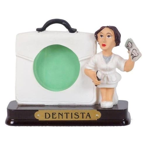 Com essa miniatura de profissional dentista mulher no tamanho de 8 cm você pode presentear amigos, colegas de trabalho, formandos e profissionais em suas datas comemorativas ou ainda fazer sua própria coleção de profissionais. A peça é produzida em resina e base de madeira que deixara o ambiente ainda mais bonito. Além de decorar o ambiente essa peça tem como outra utilidade o porta foto.