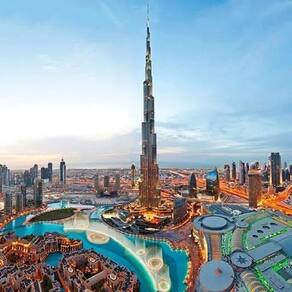 Burj Khalifa Bin Zayid Torre do Khalifa , anteriormente conhecido como Burj Dubai, é um arranha-céu localizado em Dubai, nos Emirados Árabes Unidos, sendo a mais alta estrutura e, consequentemente, o maior arranha-céu já construído pelo ser humano, com 828 metros de altura e 160 andares. Sua construção começou em 21 de setembro de 2004 e foi inaugurado no dia 4 de janeiro de 2010.