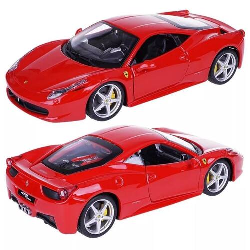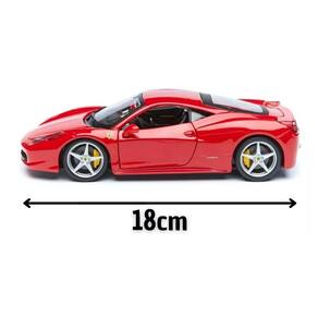Esta miniatura da Ferrari 458 Italia é uma representação fiel do icônico carro esportivo italiano. Com uma escala de 1/24 e medindo cerca de 18 centímetros de comprimento, esta miniatura é perfeita para exibir em sua coleção ou presentear um entusiasta de carros.