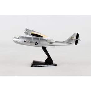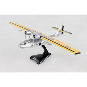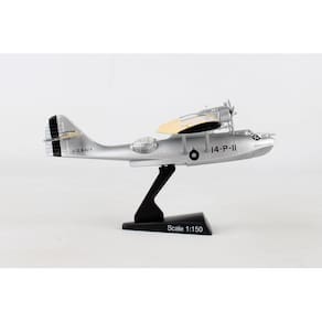 Produzido pela Consolidated Aircraft, o PBY Catalina foi um hidroavião que posteriormente se tornou um avião anfíbio, utilizado por diversos países nas décadas de 1930 e 1940. É uma aeronave de longo alcance, que não precisava de pista para operar, pois era capaz de decolar e pousar na água. Os usos do PBY incluíam patrulha marítima, bombardeio, guerra antissubmarina e missões de busca e salvamento. Lembrado por seu papel no resgate de aviadores abatidos, o PBY salvou milhares de vidas. Os aviadores da Catalina se referiam às suas aeronaves como “Cat” em missões de combate e “Dumbo” durante o resgate ar-mar. Este modelo de avião de metal fundido vem em escala 1:150 com suporte de plástico