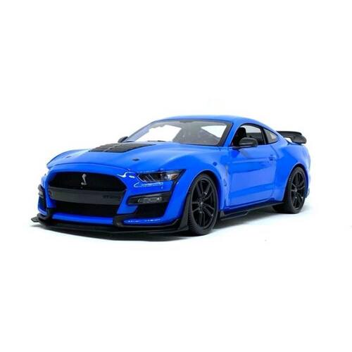 1 Miniatura Ford Mustang Shelby GT500 2020 - Azul - 1:18 - Maisto com base expositora A