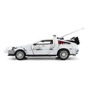 Jada – DELOREAN “DE VOLTA PARA O FUTURO FROSTY” COM LUZ (Prata – Escala 1:24 – Hollywood Rides)