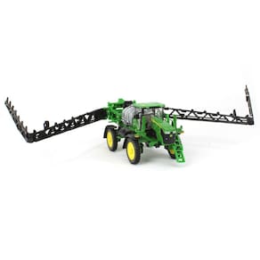 Material de Alta Qualidade: Corpo principal construído em metal fundido (diecast), com detalhes em plástico de alta resistência e pneus de borracha autêntica. Barras de Pulverização Articuladas: As imponentes barras laterais se dobram para o modo de transporte e se desdobram para o modo de trabalho, exatamente como no pulverizador real. Mecanismo Funcional: O suporte central das barras pode ser elevado e abaixado, permitindo diferentes poses de exibição. Cabine Detalhada: Interior da cabine visível através dos vidros transparentes, mostrando assento, painel e controles. Escada Articulada: A escada de acesso à cabine é articulada, adicionando mais um toque de realismo. Pintura Autêntica: Cores e decalques oficiais da John Deere, aplicados com precisão para uma fidelidade impecável. Marca: Não Informado
