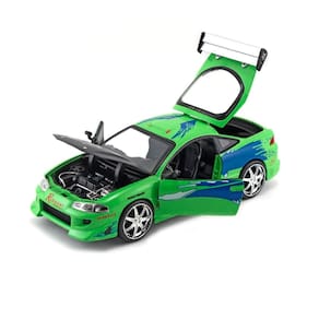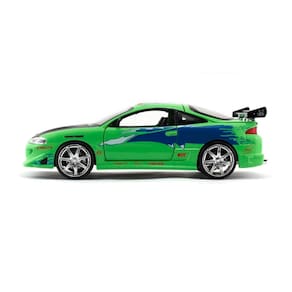 Se você é fã da franquia Velozes e Furiosos, essa miniatura do Mitsubishi Eclipse é uma peça icônica que marcou presença no primeiro filme da saga. Pilotado por Brian O'Conner, esse modelo em cor verde vibrante representa o espírito das corridas de rua e da cultura automotiva dos anos 2000.