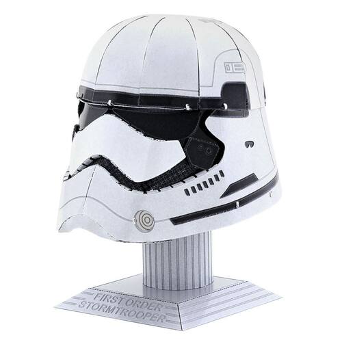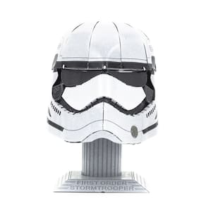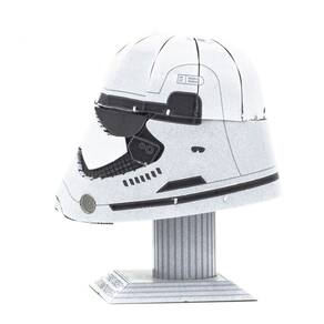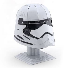 A descrição deve evitar qualquer menção direta à franquia Star Wars ou ao nome First Order Stormtrooper. A melhor abordagem é uma descrição técnica, centrada nos materiais, no processo de montagem e no apelo colecionável.