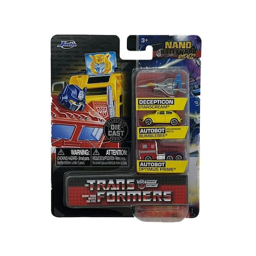 Para os fãs de Transformers e miniaturas colecionáveis, essa edição especial da linha Nano Hollywood Rides da Jada traz modelos icônicos em um formato compacto e detalhado. Com um design autêntico e acabamento premium, essa miniatura representa a essência dos lendários Autobots e Decepticons.