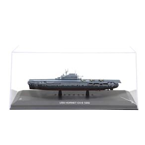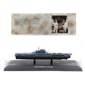 Especificações Técnicas: Modelo: USS Hornet CV-8 Escala: 1/1250 Material: Estrutura principal: Metal fundido (diecast) Componentes e aviões: Plástico de alta qualidade Dimensões Aproximadas: Comprimento: 21,5 cm Largura: 3,5 cm Altura: 4,8 cm Peso: Aprox. 250 g Pintura: Esquema camuflado cinza naval dos EUA, com marcações históricas do porta-aviões. Ean: 0687312231898