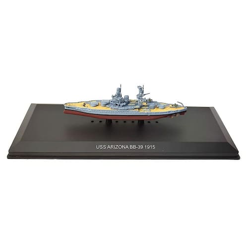Adicione um pedaço da história americana à sua coleção com este modelo diecast do USS Arizona BB-39, de 1915!Este modelo é uma réplica fiel do navio histórico, fabricado em escala 1:1250 pela Motor City Classics. Feito de metal e plástico de alta qualidade, ele possui detalhes impressionantes, como canhões, trilhos de blindagem e marcações autênticas.O USS Arizona BB-39 foi um navio de guerra da classe Pennsylvania que serviu na Marinha dos Estados Unidos durante a Primeira e a Segunda Guerras Mundiais. Ele foi afundado no ataque a Pearl Harbor em 7 de dezembro de 1941, e é um dos locais de memória mais visitados dos Estados Unidos. Marca: Não Informado