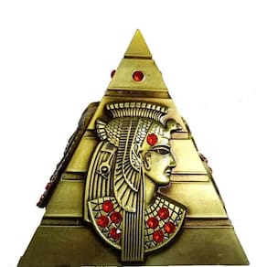 Enfeite Pirâmide Estátua Egito Decoração Escultura Metal Pirâmide Egípcia Enfeite Decoração Este item apresenta quatro faces, cada uma com um padrão distinto. Cria uma atmosfera misteriosa e de época. Produzido em metal com tonalidade Ouro Velho. Medidas de 10 cm de largura x 10 cm de altura