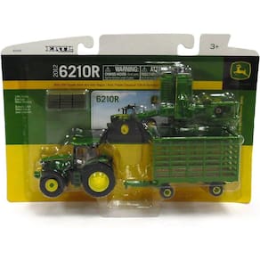 Os fãs da John Deere de todas as idades vão adorar ter este conjunto Trator e Bale para adicionar à sua coleção de brinquedos agrícolas. Enganche a enfardadeira quadrada 338 no trator 610R e vá para os campos. Mais tarde, as crianças podem usar o Bale Wagon para recolher os fardos. O conjunto inclui ainda 6 fardos que adicionam realismo à hora de brincar. Construído com peças fundidas e plásticas resistentes, este conjunto é perfeito para brincadeiras internas e externas.