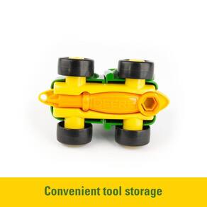 Produzidos pela ERTL, uma empresa norte-americana especializada na manufatura e distribuição de réplicas em metal injetado (die-cast) de miniaturas agrícolas, os tratores da John Deere estão disponíveis para fazer parte de sua coleção! Em mini versões fiéis aos detalhes das máquinas reais, os colecionáveis juntam o design John Deere com a qualidade ERTL! Nesta edição, o trator John Deere acompanha um playset Build-A-Buddy e um ScrewDriver.