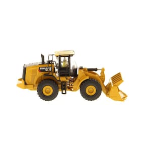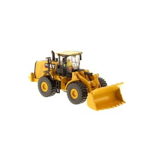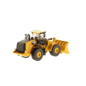 Pá carregadeira de rodas Cat 972M - escala de modelo ferroviário 1:87 HO altamente detalhada, réplica de modelo fundido com pintura e decalques realistas, interior detalhado, lança/caçamba móveis, direção articulada e rodas giratórias autênticas e pneus de borracha. As dimensões do item são 10,16 cm x 3,49 cm x 4,13 cm. Colecionável adulto projetado para maiores de 14 anos
