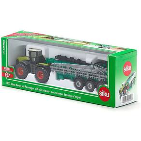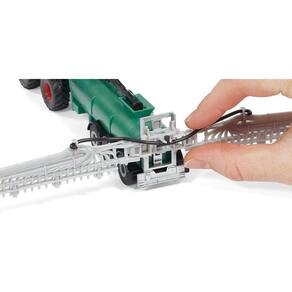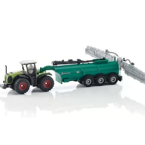 Fãs da série de modelos 87 e modelos agrícolas em miniatura descobrirão que esta combinação de veículos realiza todos os seus desejos! O veículo de transporte Claas Xerion puxa o poderoso caminhão-tanque a vácuo Samson que pode, é claro, ser desacoplado. Especialmente impressionante: a autêntica lança de mangueira de gotejamento na parte traseira do caminhão-tanque se estende a uma largura de trabalho impressionante. O teto da cabine do Claas Xerion é removível e pneus de borracha garantem uma tração sólida. Logotipo com letras finas.