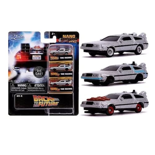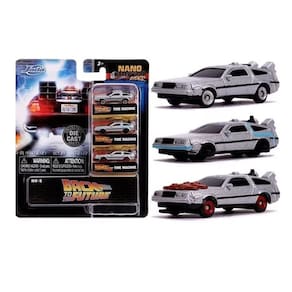 Atravesse as décadas com este pack exclusivo da Jada Toys, que traz o icônico DeLorean da trilogia "De Volta Para o Futuro" em uma escala detalhada de 1:87 com aproximadamente 4 cm de comprimento. Fabricado em metal die-cast, este conjunto é um tributo à incrível máquina do tempo que marcou gerações.