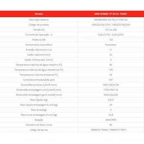 Minibomba de Água Pressurizador TP40 Komeco G4 Ferro 127V - Casa dos Fogões -