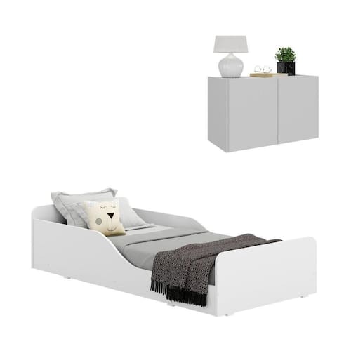 A Minicama Montessoriana para Colchão 70 x 150cm com Mesa de Cabeceira Multimóveis MP4172 possuem acabamento acetinado (cerca de 20% de brilho) que garante durabilidade e resistência.A minicama (suporta até 50kg) é produzida 100% em MDF com pintura UV (tinta atóxica), possui cantos arredondados e barras de proteção laterais (com recuo) que oferecem maior segurança para as noites de sono da criança, e é montessoriana, ideal para estimular autonomia desde cedo na vida do pequeno. Para completar o quarto, acompanha mesa de cabeceira (MDP 15mm) que possui 2 portas com amplo espaço interno para organizar os objetos mais utilizados no dia a dia, e suporta até 6kg no tampo e 6kg no seu interior. NÃO acompanha colchão (tamanho do colchão indicado: 70 x 150 cm).