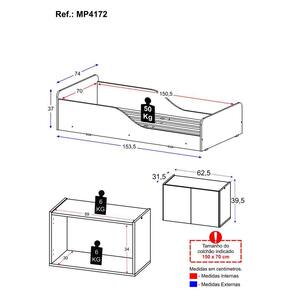 Dimensões do produto montado: Minicama - Altura: 37cm | Largura: 153,5cm | Profundidade: 74cm Mesa de Cabeceira - Altura: 39,5cm | Largura: 62,5cm | Profundidade: 31,5cm *Você pode consultar as medidas detalhadas na imagem técnica do produto.