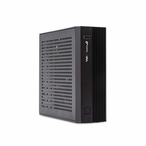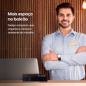Seu formato compacto permite instalação em diferentes ambientes, inclusive com suporte padrão VESA.
