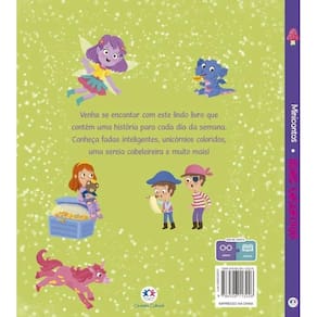 Venha se encantar com este lindo livro que contém uma história para cada dia da semana. Conheça fadas inteligentes, unicórnios coloridos, uma sereia cabeleireira e muito mais