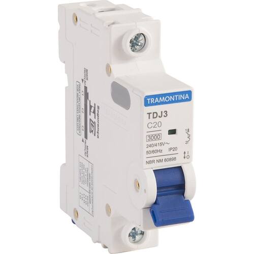 Minidisjuntor Tdj3 1p 20a 3ka Curva C Tdj3-1c20 Tramontina 58011106 Leve alta qualidade para seus projetos elétricos, com o minidisjuntor TDJ3 1 P 20 A 3kA curva C Tramontina. Desenvolvido para garantir a segurança da instalação ele preserva a rede elétrica e seus equipamentos em caso de sobrecarga ou curto-circuito. Ele possui janela de inspeção do estado, é instalado no quadro de distribuição e dimensionado de acordo com a potência dos equipamentos, números de tomadas e quantidade de lâmpadas. Sua montagem é individual, sem a necessidade de desmontar o barramento, o que otimiza o tempo de instalação. Um item com a qualidade Tramontina, que você já conhece e confia CARACTERÍSTICAS DO PRODUTO Informações Gerais:Este produto não é indicado para instalações fotovoltaicas. Para esta aplicação, favor consultar os disjuntores das linhas TDJ6 e TDJ10. recomendações de Uso: É importante que o produto seja instalado por um profissional qualificado. desligar a energia elétrica antes de fazer a instalação. 90 dias de legal para vícios ou defeitos de fabricação. Ean: 7891435966343