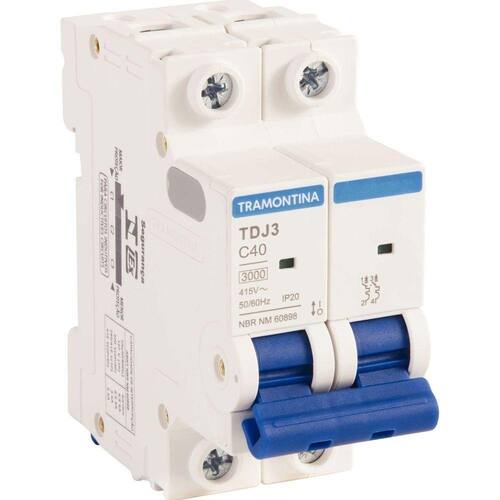 Minidisjuntor TDJ3 2 P 40 A 3 kA curva C Tramontina