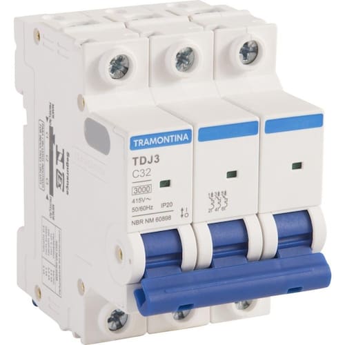 Com o Minidisjuntor TDJ3 3 P 40 A 3kA curva C Tramontina você irá garantir alta qualidade para seus projetos elétricos. Desenvolvido para garantir a segurança da instalação, ele preserva a rede elétrica e seus equipamentos em caso de sobrecarga ou curto-circuito. Ele possui janela de inspeção do estado, é instalado no quadro de distribuição e dimensionado de acordo com a potência dos equipamentos, números de tomadas e quantidade de lâmpadas. Sua montagem é individual, sem a necessidade de desmontar o barramento, o que otimiza o tempo de instalação. Um item com a qualidade Tramontina, que você já conhece e confia