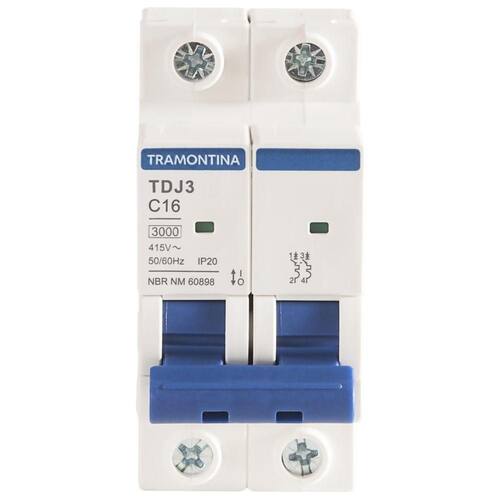 Minidisjuntor Tdj3ka 2 P 16 A Curva C Tramontina Minidisjuntor TDJ3kA 2 P 16 A curva C Tramontina Garanta o melhor para seus projetos elétricos, com o Minidisjuntor TDJ3kA 2 P 16 A curva C Tramontina. Desenvolvido para garantir a segurança da instalação, ele preserva a rede elétrica e seus equipamentos em caso de sobrecarga ou curto-circuito. Ele possui janela de inspeção do estado, é instalado no quadro de distribuição e dimensionado de acordo com a potência dos equipamentos, números de tomadas e quantidade de lâmpadas. Sua montagem é individual, sem a necessidade de desmontar o barramento, o que otimiza o tempo de instalação. Um item com a qualidade Tramontina, que você já conhece e confia!