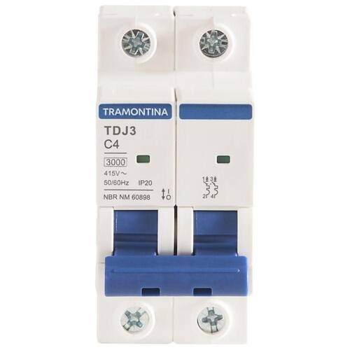 Minidisjuntor Tdj3ka 2 P 4 A Curva C Tramontina Minidisjuntor TDJ3kA 2 P 4 A curva C Tramontina Garanta o melhor para seus projetos elétricos, com o Minidisjuntor TDJ3kA 2 P 4 A curva C Tramontina. Desenvolvido para garantir a segurança da instalação, ele preserva a rede elétrica e seus equipamentos em caso de sobrecarga ou curto-circuito. Ele possui janela de inspeção do estado, é instalado no quadro de distribuição e dimensionado de acordo com a potência dos equipamentos, números de tomadas e quantidade de lâmpadas. Sua montagem é individual, sem a necessidade de desmontar o barramento, o que otimiza o tempo de instalação. Um item com a qualidade Tramontina, que você já conhece e confia!