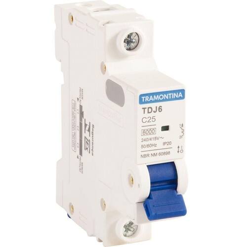 Minidisjuntor Tdj6 1 P 25 A 6ka Curva C Tramontina Tramontina Minidisjuntor TDJ6 1 P 25 A 6kA curva C Tramontina Tramontina - O Minidisjuntor TDJ6 1 P 25 A 6 kA curva C Tramontina é um item indispensável para garantir projetos elétricos funcionais e de alta qualidade. Desenvolvido para garantir a segurança da instalação, ele preserva a rede elétrica e seus equipamentos em caso de sobrecarga ou curto-circuito. Ele possui janela de inspeção do estado, é instalado no quadro de distribuição e dimensionado de acordo com a potência dos equipamentos, números de tomadas e quantidade de lâmpadas. Sua montagem é individual, sem a necessidade de desmontar o barramento, o que otimiza o tempo de instalação. Além disso, possui indicador de liga e desliga que informa o seu status. Um item com a qualidade Tramontina, que você já conhece e confia! Características Gerais do Produto: Garantia: - 18 meses (3 meses legal + 15 meses contratual) para defeitos de fabricação